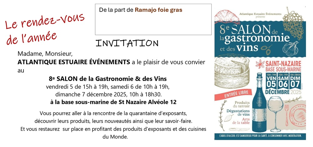 - Visite de la Maison Ramajo sur Juillet et Aout avec dégustation gratuite de nos produits tous les mercredis à 17h (visite des parcs d’élevage d’oies et de canards, présentation méthode de Gavage, atelier découpe, découverte des secrets de fabrication dans notre conserverie etc.).